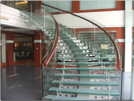Hiện nay các mẫu cầu thang cong mềm mại được đánh giá là tốt nhất vì giúp nguồn khí tốt trong nhà được lưu thông đều đặn từ tầng dưới lên tầng trên. mẫu cầu thang xoắn ốc nếu xây đối diện cửa trước hay ở giữa nhà sẽ khiến gia chủ gặp các vấn đề về tiền bạc và sức khỏe. Với sự kết hợp giữa chất liệu gỗ và sắt, mẫu cầu thang được thiết kế lan can kính theo phong cách này cũng góp phần nâng cao giá trị của ngôi nhà nhờ chất liệu gỗ tự nhiên cao cấp, kết hợp với khung kim loại cứng cáp.